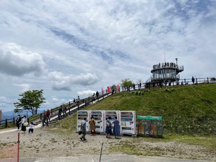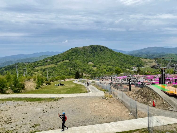 観光リフトを降り、左に芝桜の丘、右に展望台。