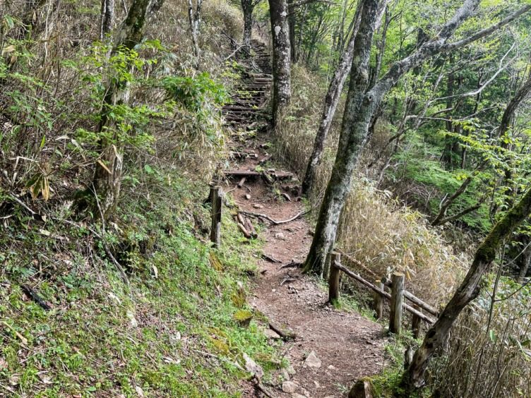 登山道は右へ自然とまがり、休暇村登山ルートと合流。