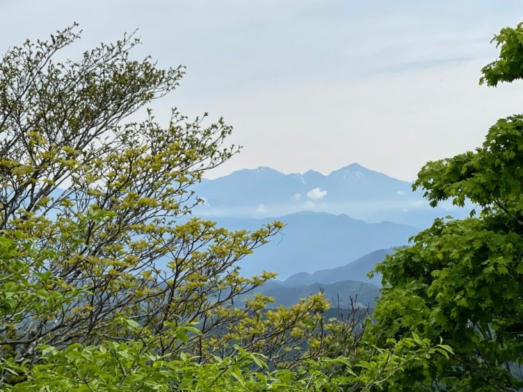 南アルプスの名峰、悪沢岳、赤石岳、聖岳がくっきり見える。