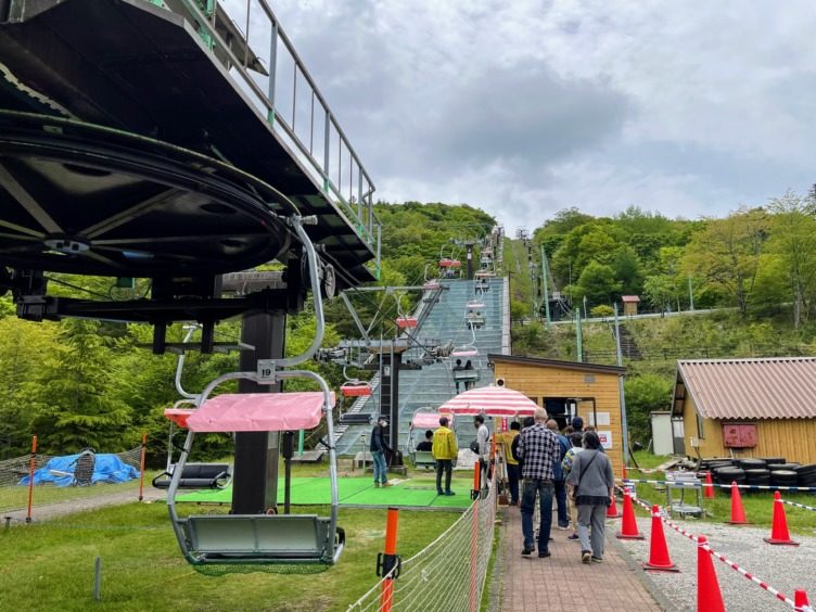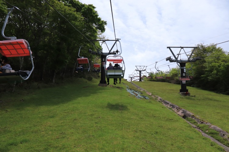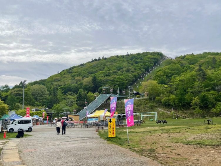 総合案内所・レストハウスやはずを過ぎ、右手ゲレンデを登る。