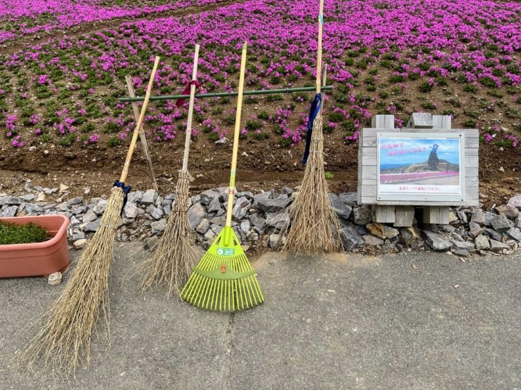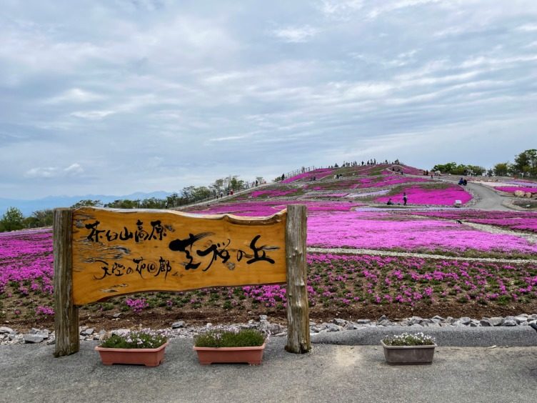 隣の萩太郎山はぎたろうやまは芝桜の花畑が整備され、多くの観光客が訪れる。