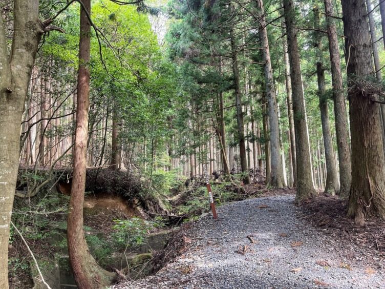 杉が立ち並ぶ気持ち良い森林。