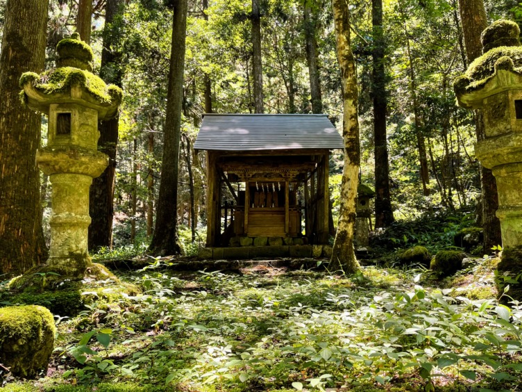 本殿に向かい左へ、車庫を過ぎ、丸太橋を渡ろう。
