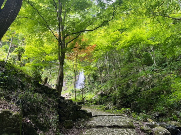 一の滝は折り返し地点、石畳が広く休憩にぴったりだ。