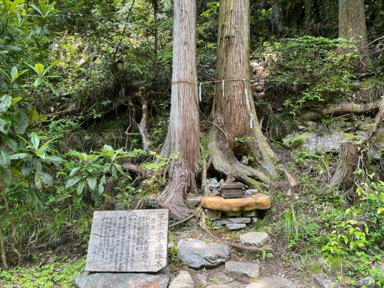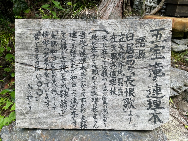 五宝滝の連理木。杉と桧が仲良く寄り添う。