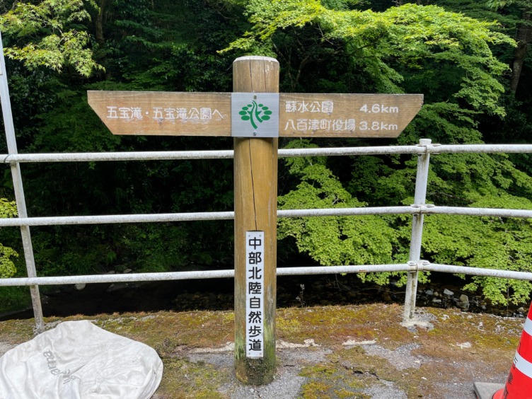 橋と大きな案内板から五宝滝周遊コースに入る。