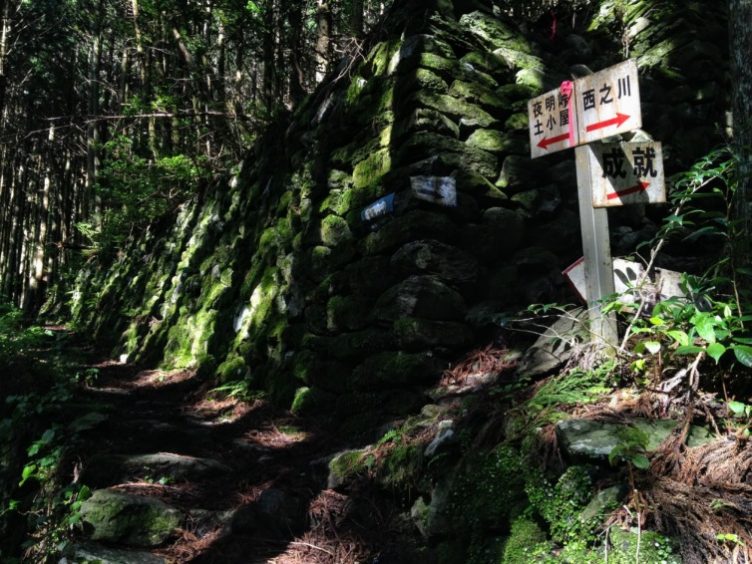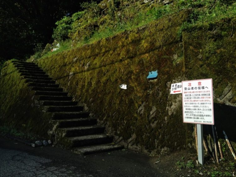 この石段から成就、表参道へ合流し石鎚山を目指します。