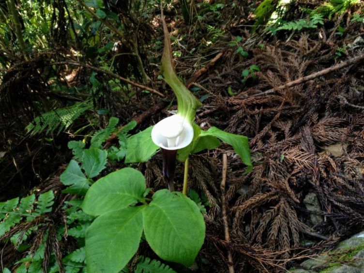 何かを丸飲みしているかのようなマムシグサ。