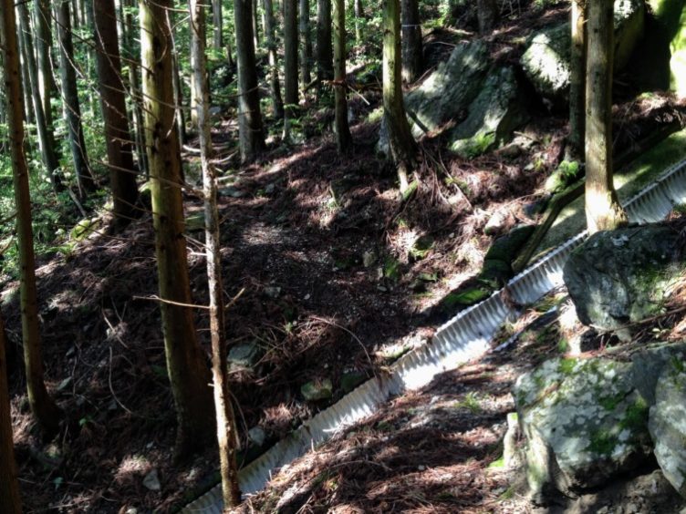 登山道を横切るハーフパイプは軽くまたいで進めました。