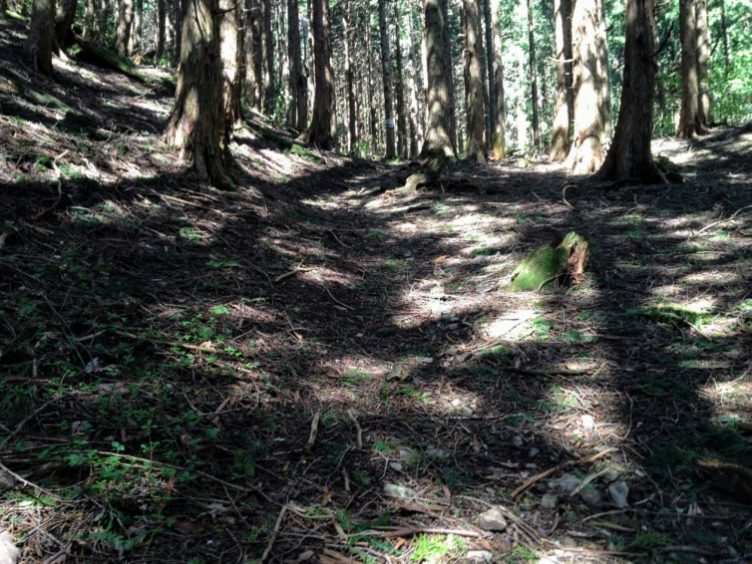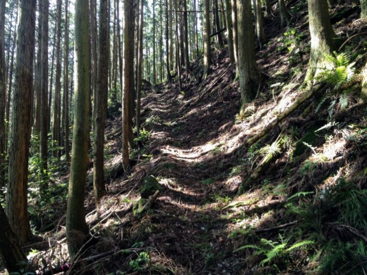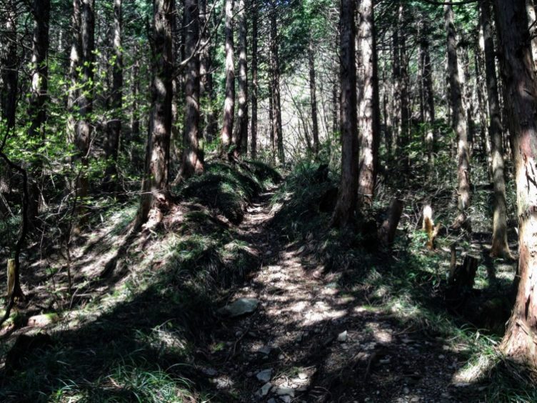 杉の植林帯を巻き気味に進んで行きます。