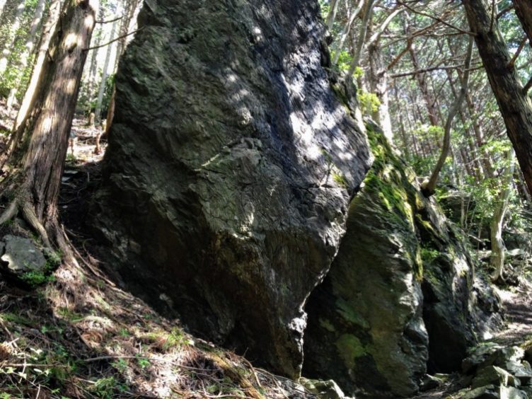 名も無い巨岩。あまり変化のない登山道ではありがたい目印ですね!