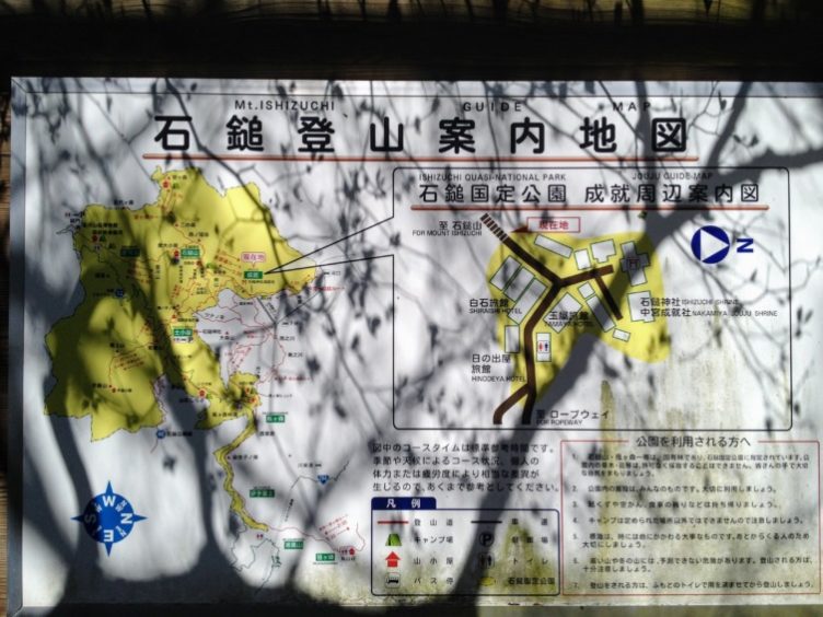 神門をくぐったところにある石鎚登山案内地図。
