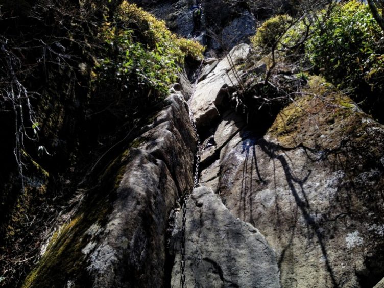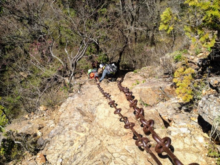 この後、一の鎖から三の鎖まで鎖場が連続します。
