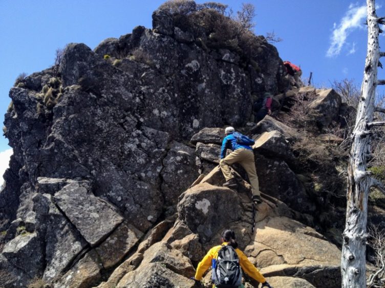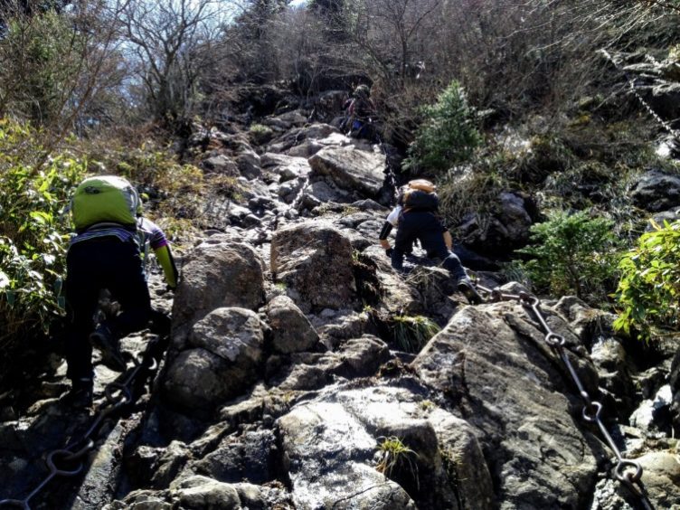 天狗岳へ向かう鎖場は渋滞中。