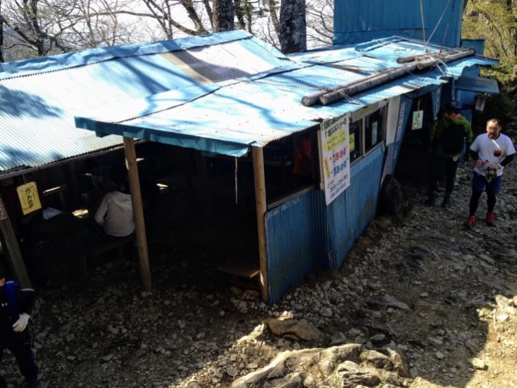弥山頂上は風が強いので石鎚山頂上小屋で昼食にします。