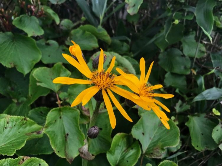 ちょっとだらしなく咲くのはマルバダケブキ。