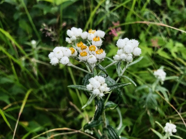 カラマツソウとは対称的にギュギュっと詰まったヤマハハコ。