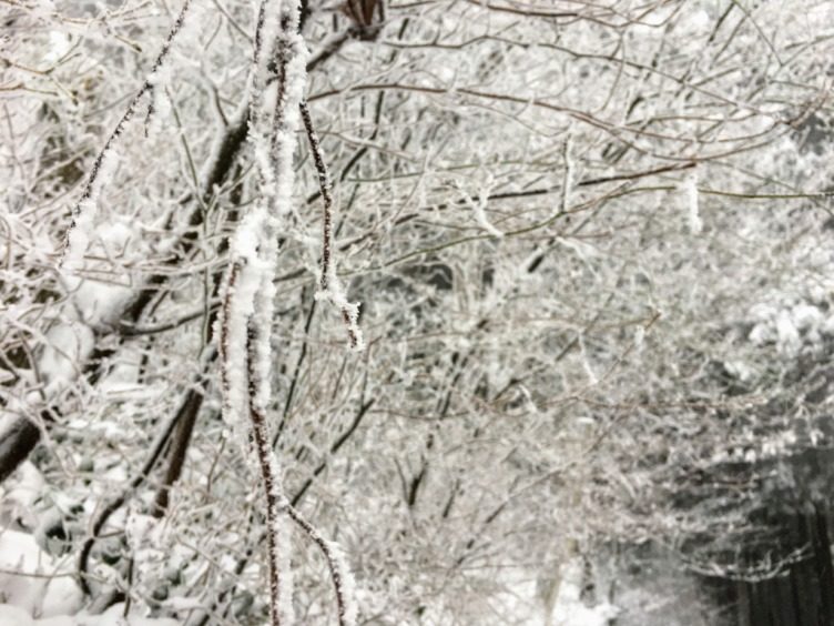 木々が雪の重みで枝を大きく下げていました。