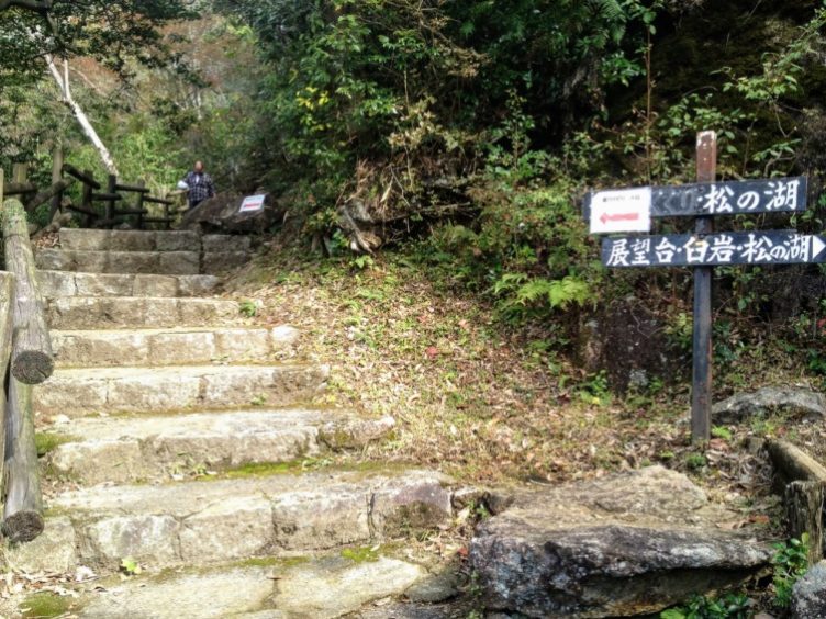 岩穴くぐり入口は突き当たり左の石段を進みます。