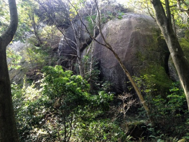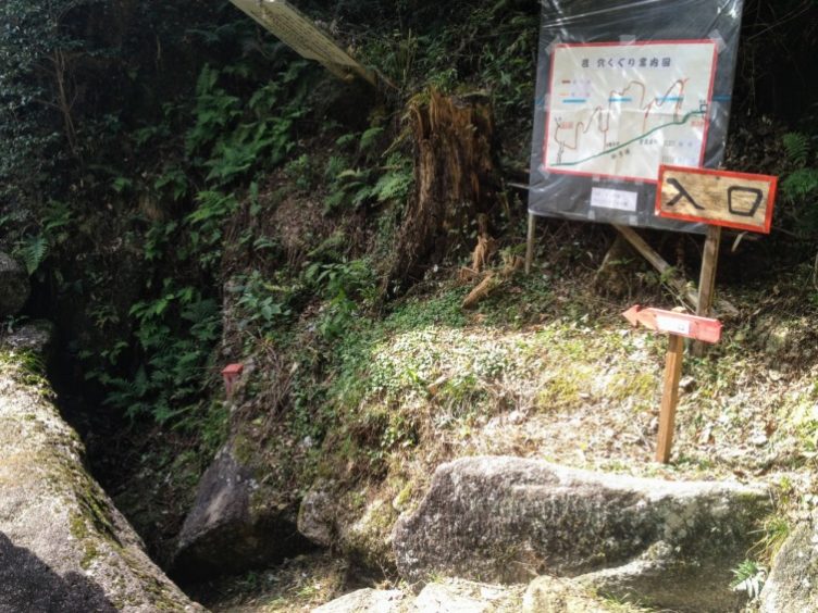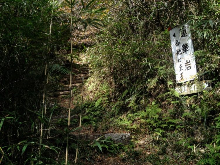 蓮華岩休憩舎から少し下って左へ進み、岩の隙間へ。