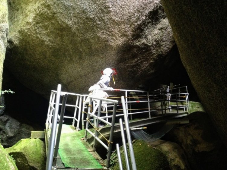 鬼岩公園 岩穴くぐりは暗く狭い岩穴を身体をよじりながら進むのが面白い!