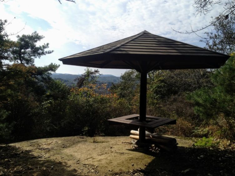 1枚岩の上に立つ展望休憩舎はちょっぴり残念な展望。