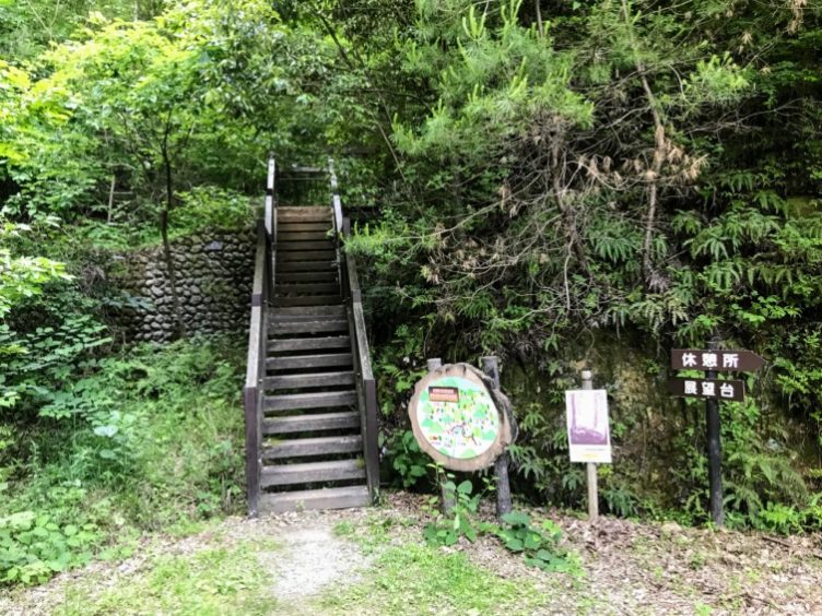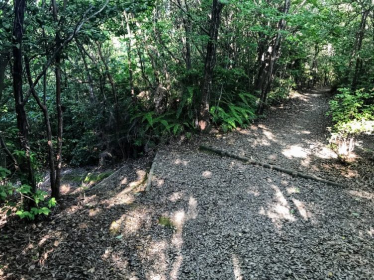 遊歩道の丸太階段は段差が小さくて歩きやすい。
