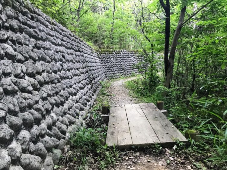 市民四季の道は右、左側に階段が埋もれている。