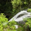 丸太階段の急降下、シダのトンネルは思わず駆け抜ける。