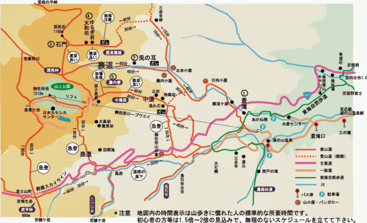 | ルート | 御在所ロープウェイ(湯の山温泉駅 ⇒ 山頂公園駅) ⇒ 観光リフト(ロープウェイ駅 ⇒ 頂上駅) ⇒ 御在所岳 ⇒ 裏道(第一ケルン ⇒ 国見峠 ⇒ 藤内小屋 ⇒ 蒼滝不動) ⇒ 湯の山温泉駅 |