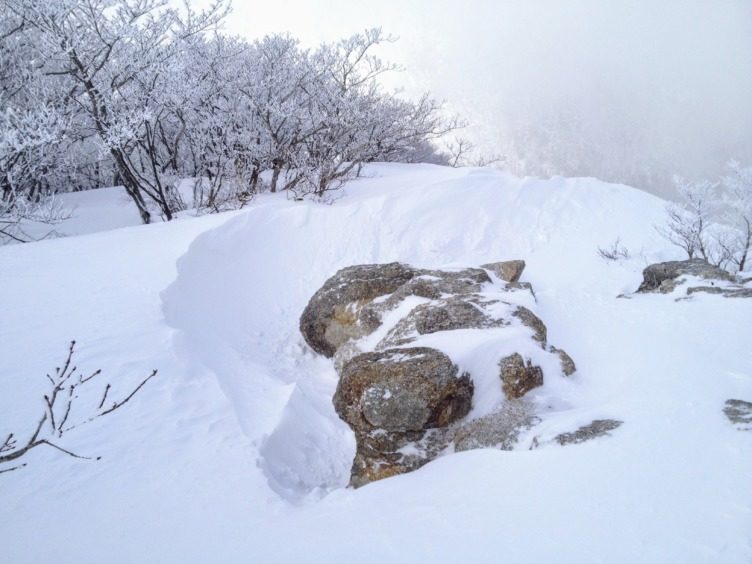 雪に覆われた岩場はどこか柔らかい印象を受けます。