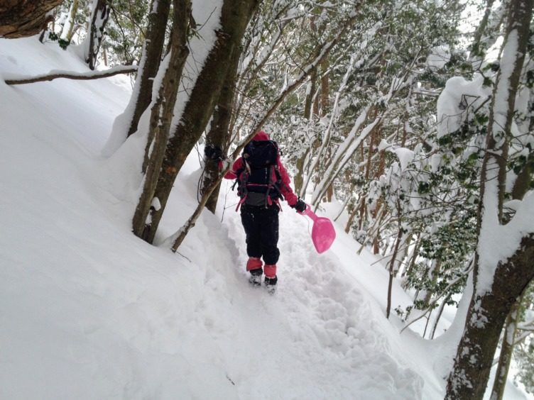 後続に先を譲り、残されたトレースを使えばワカンはいりません。