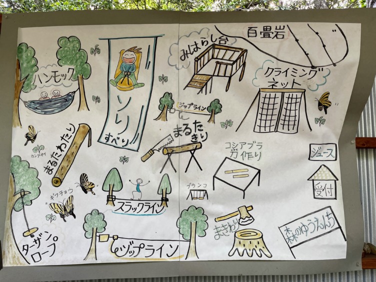 クライミングネット、そり滑り、スラックライン、ターザンロープ。