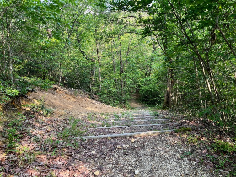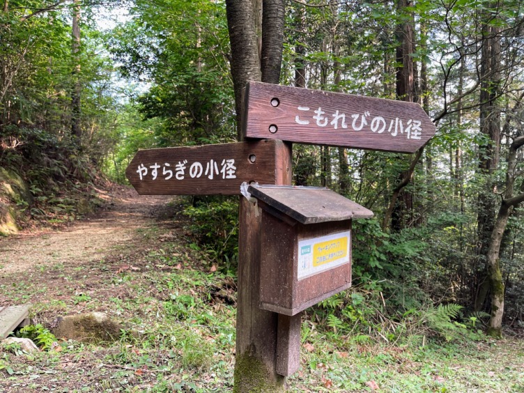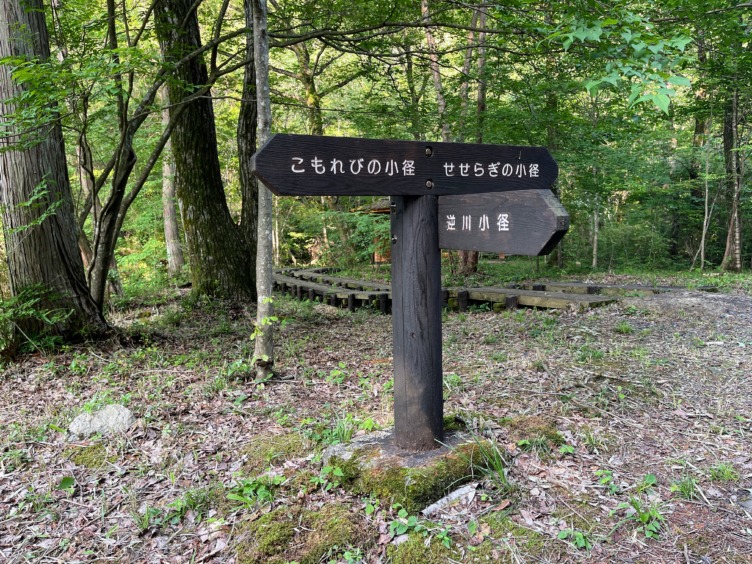 丸太階段を下り、こもれびの小径・せせらぎの小径に合流。