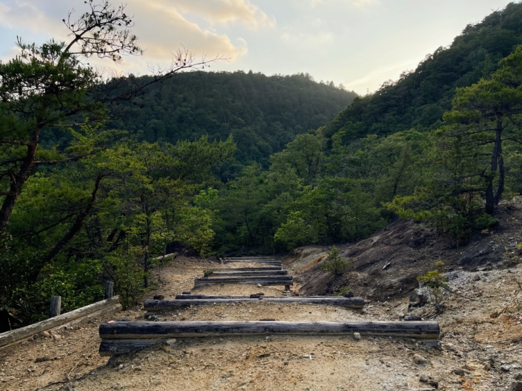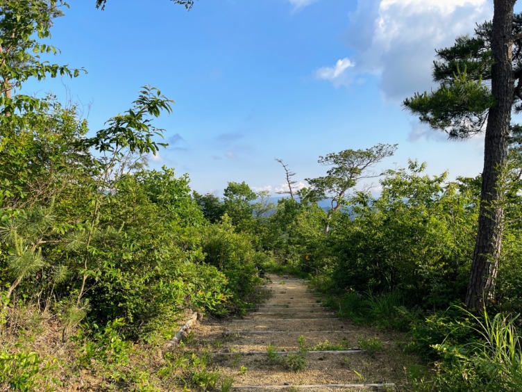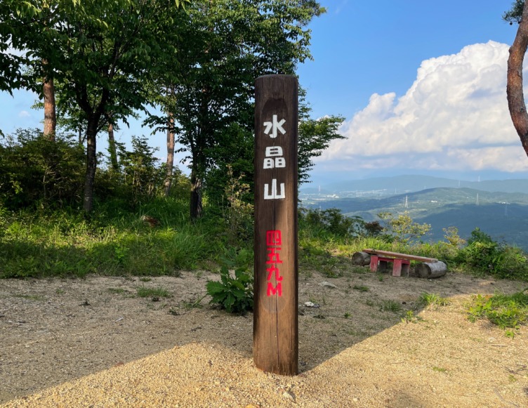 やや急で長い丸太階段を越えれば、水晶山山頂だ。