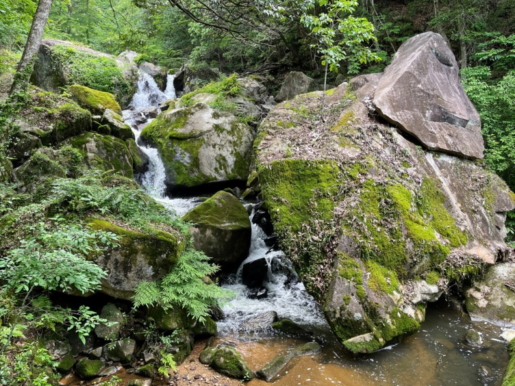 岩間をうねる滝が川を昇る昇竜のようだ。