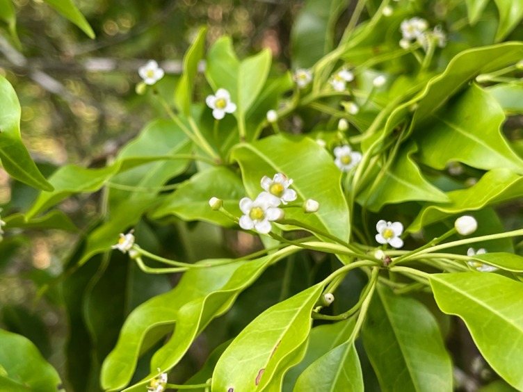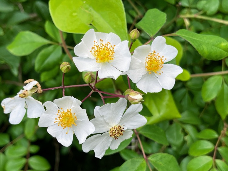 谷空木、えごの木、照葉野茨、黐躑躅。