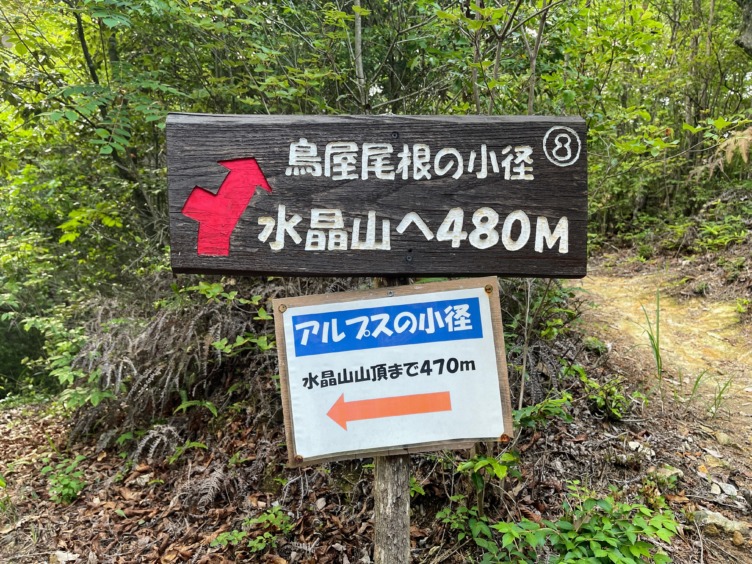 急な坂道を下り、登り返せば、アルプスの小径・鳥屋尾根合流。