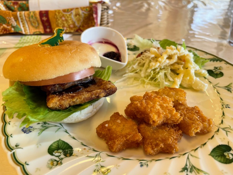 ご当地バーガー「元気玉バーガー」とカモミールティーを楽しみました。