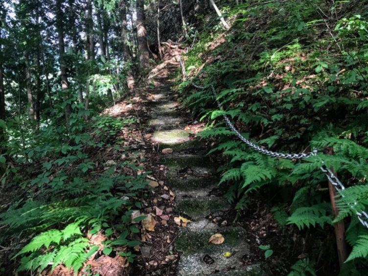 細くすれ違い困難な石段が続きます。