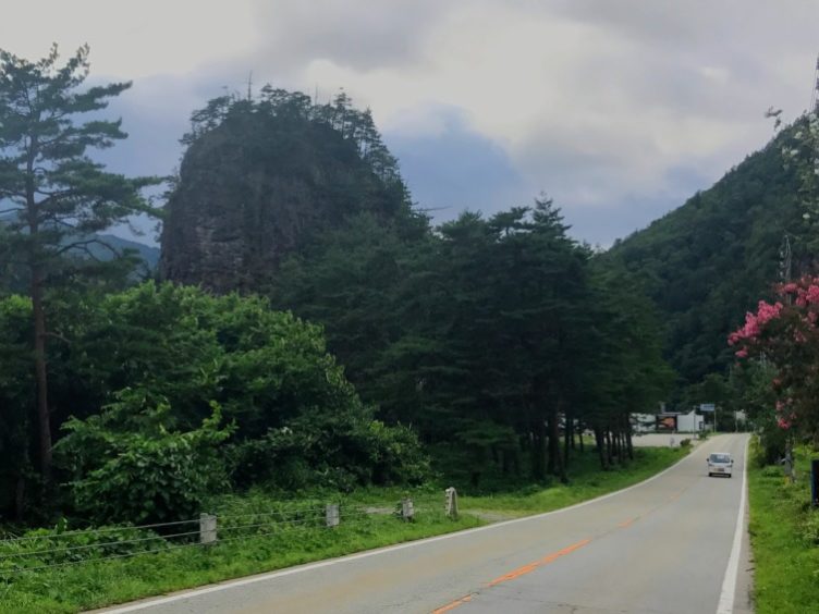 高原川からはより荒々しい杖石を眺められます。