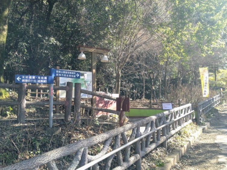 岐阜公園に入って直進、突き当たり右すぐの青看板が目印。