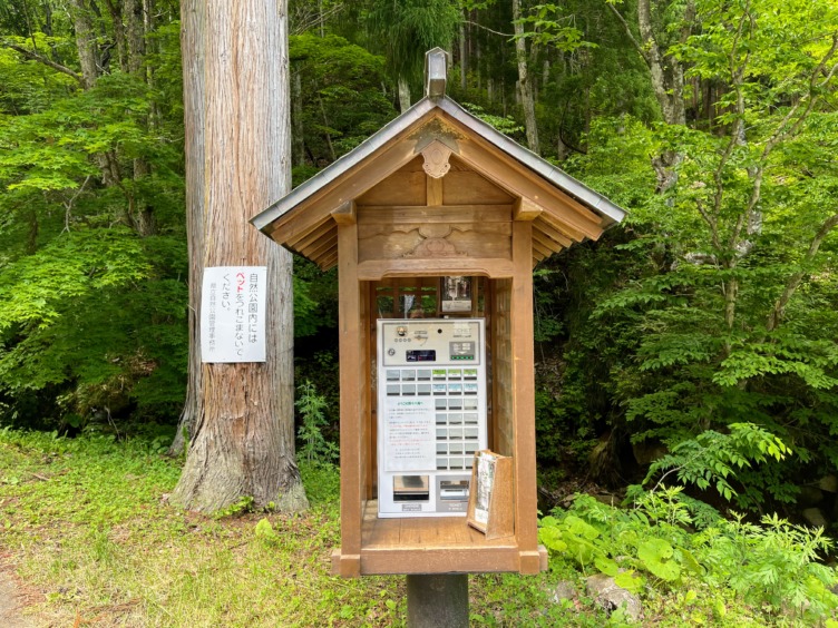 券売機で清掃協力金を支払い、滝めぐりハイキングが始まる。