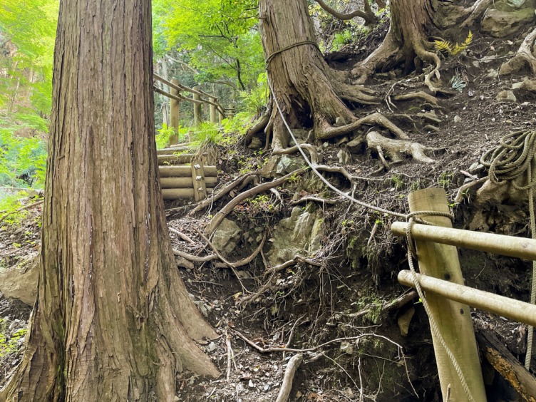 手すりが直江の滝に導いてくれる。