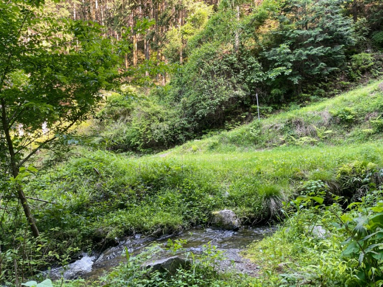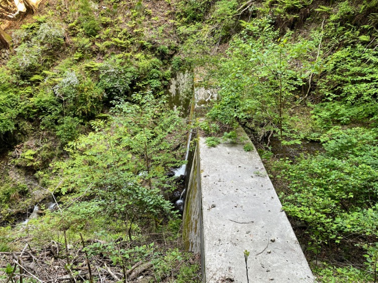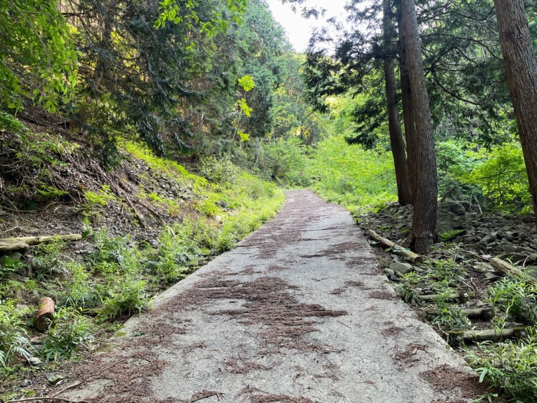 小さな沢をまたぎ、林道に合流する。