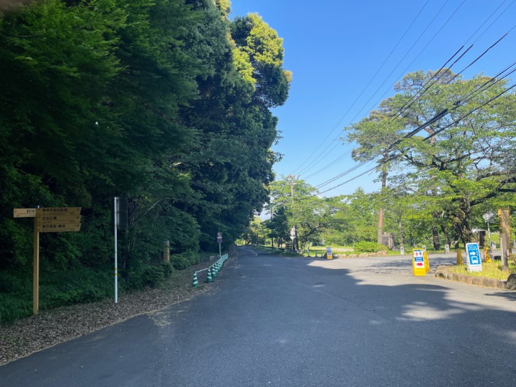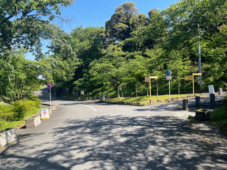 駐車場入口を右、松風橋を渡ろう。