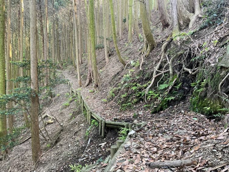 やがて柵を離れ、杉樹林に出る。