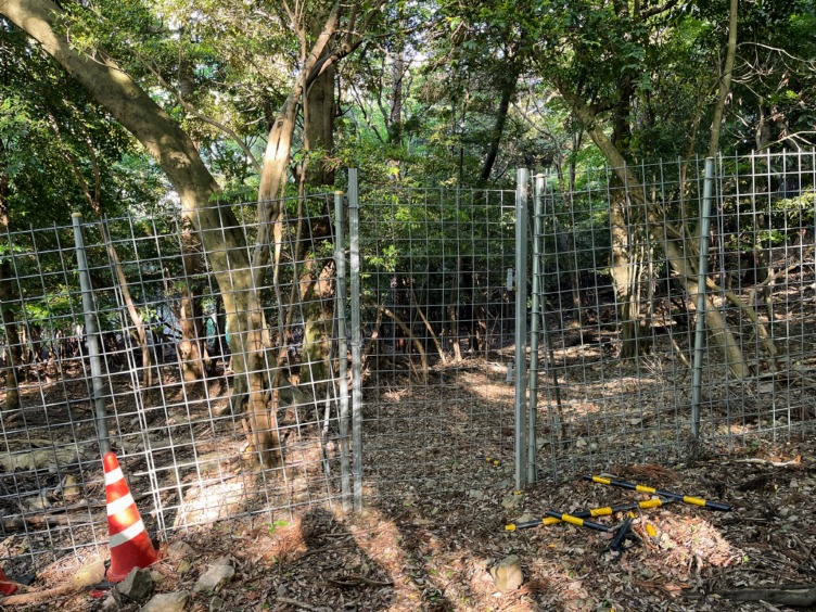 RECAMP養老の防獣柵沿いに進む。