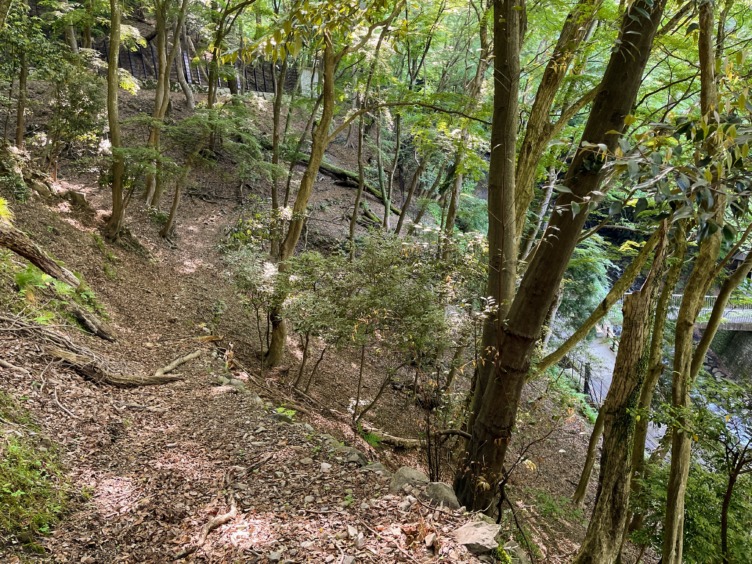 登山道から妙見橋を振り返る。